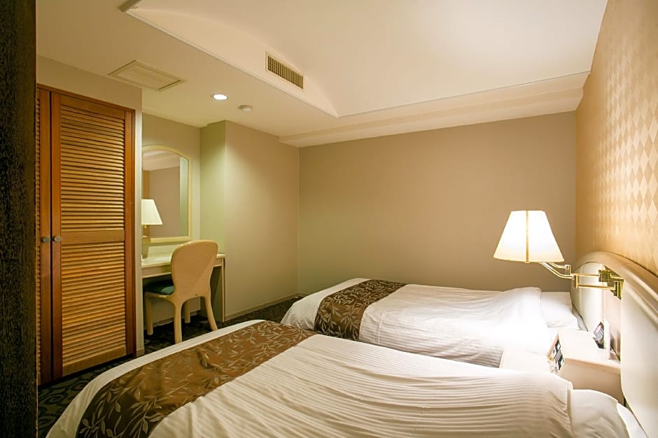 The spacious twin room provides air conditioning, tatami, a terrace with sea views as well as a private bathroom featuring a bath. The unit offers 2 beds and 2 futons.